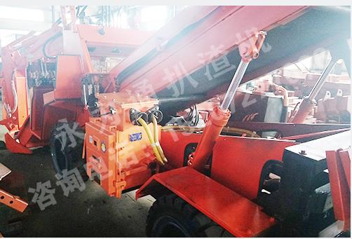 2、輸送系統,為適應多分枝巷道工作環境,可配裝折疊式輸送架,通過控制油缸的伸縮來實現輸送架折疊,以調節整機長度,方便扒渣機在巷道內轉彎、轉場。
